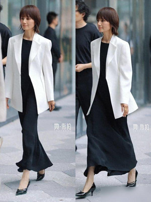袁泉最近那身小黑裙搭西装的造型,我刷到的时候直接存了图——原来中年女性的优雅不是靠买贵衣服堆出来的,是把基础款穿得“有小心思”。