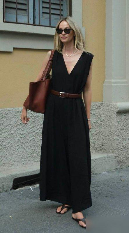 通勤搭件浅灰西装,料子软一点,别选那种硬邦邦的黑西装——比套装灵活,比单穿裙子有气场;周末想慵懒,就用衬衫叠吊带裙,冰丝开衫打个结搭肩膀上,配双编织凉鞋,带娃逛公园或者和朋友喝下午茶,舒服又好看;秋冬更省事,搭件长大衣,露出一截裙摆,走路的时候晃两下,比穿羽绒服有范儿多了。